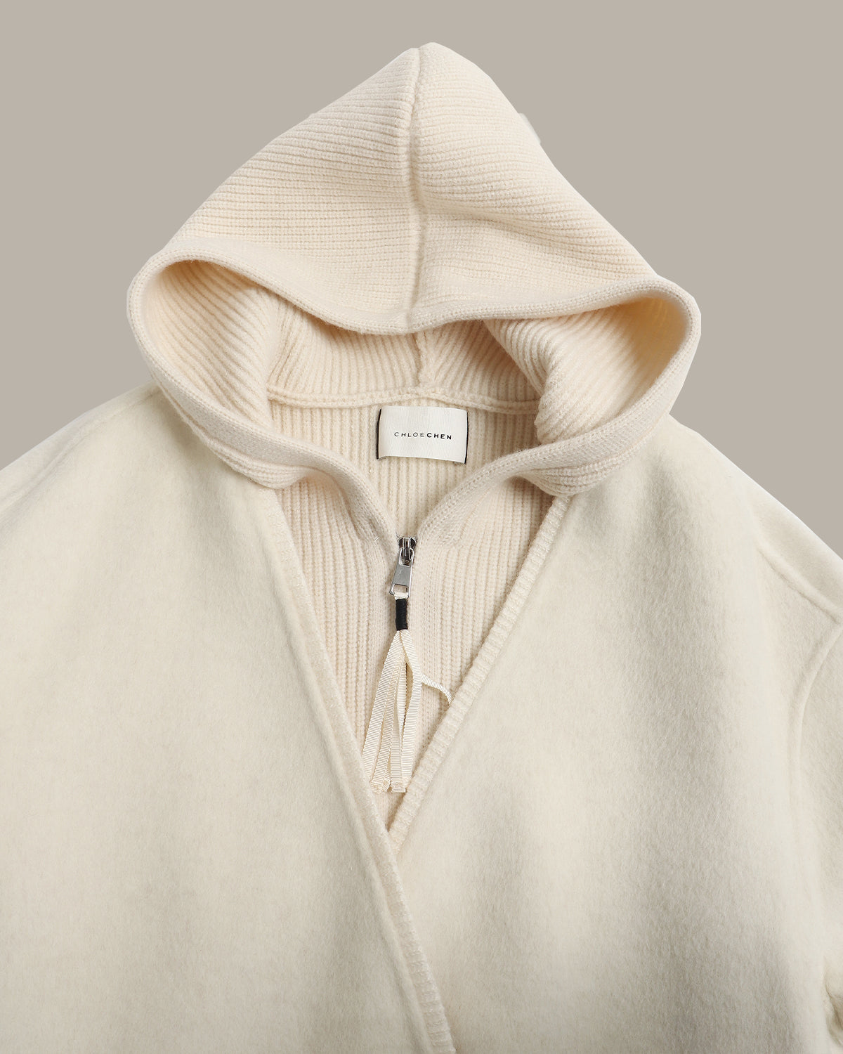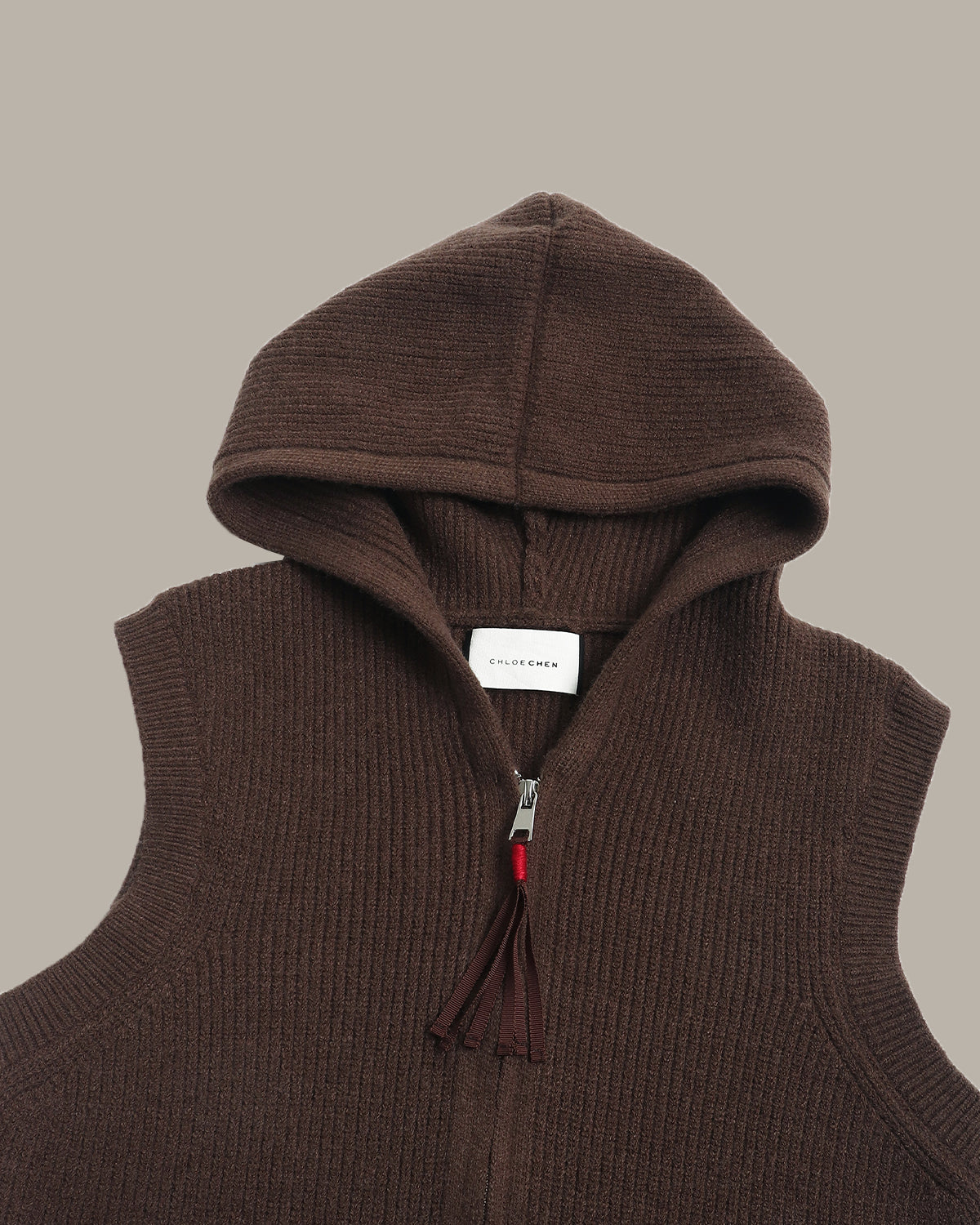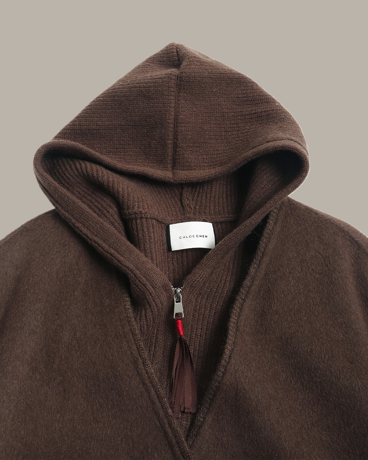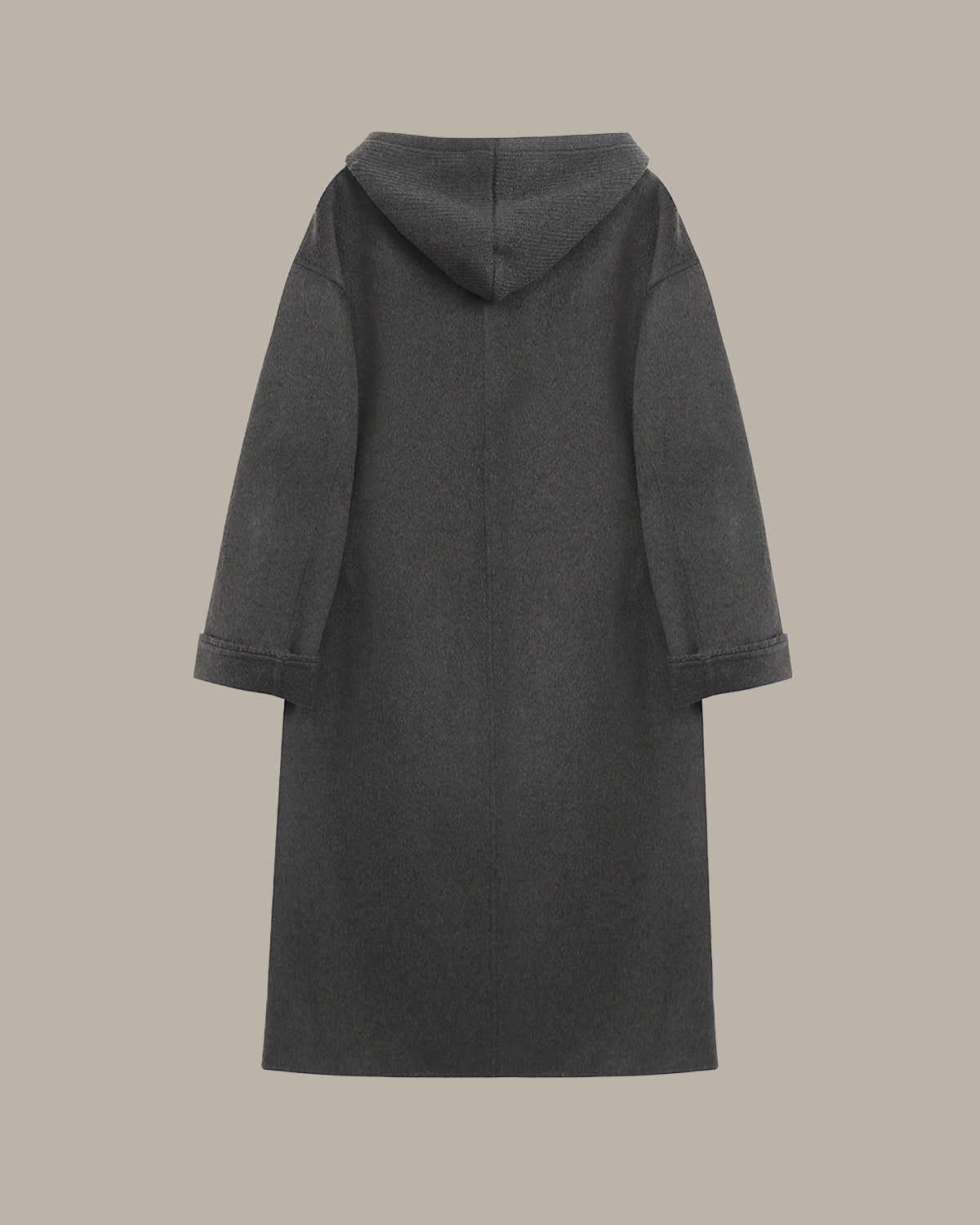 This earthy 2-piece set (hooded wool coat + knit vest) shines with a lined hood and contrast buttons. The relaxed mid-length coat pairs comfort and minimalism: match with the vest + trousers for polish, or layer over loungewear for ease. A versatile staple merging timeless warmth and modern grace.
