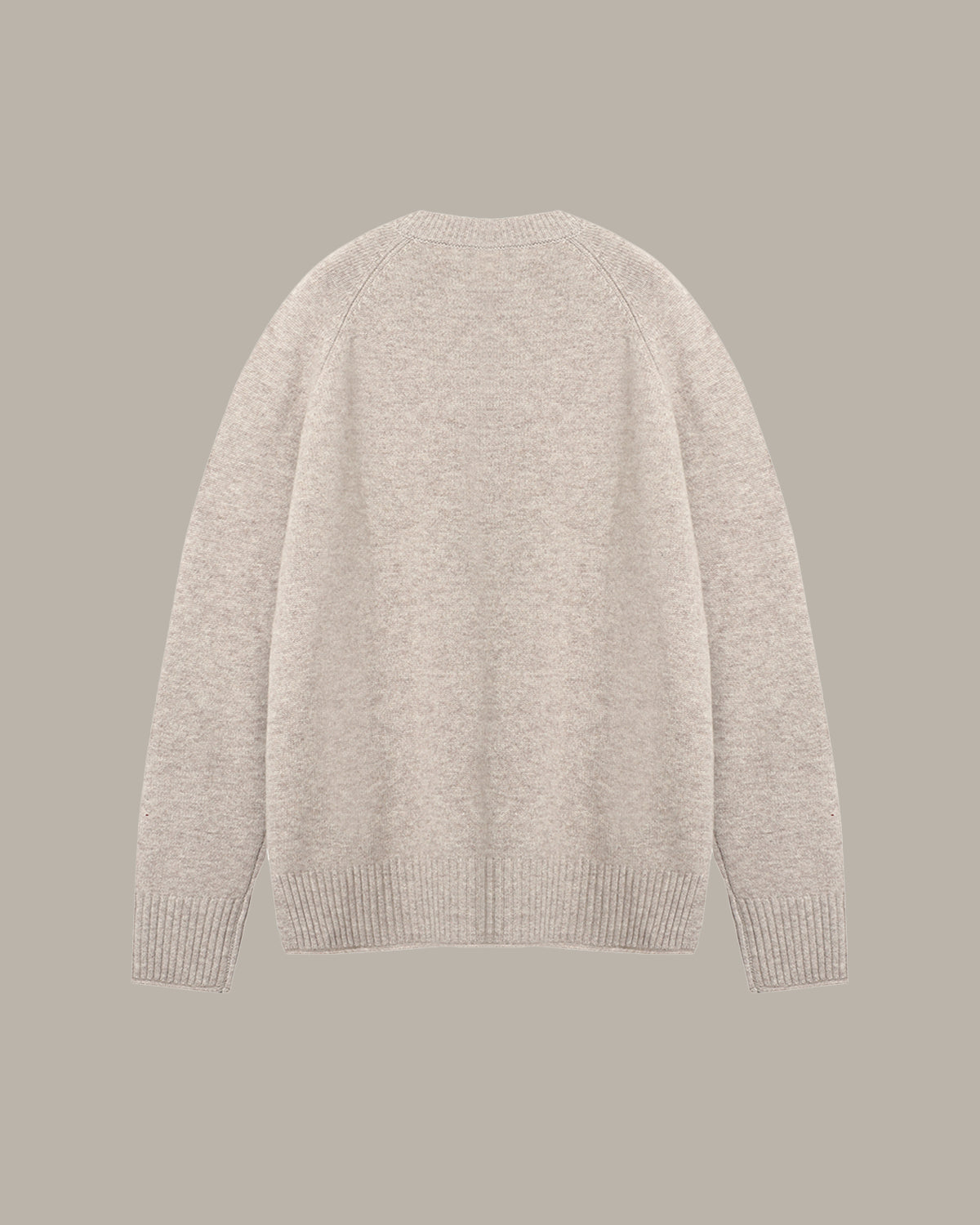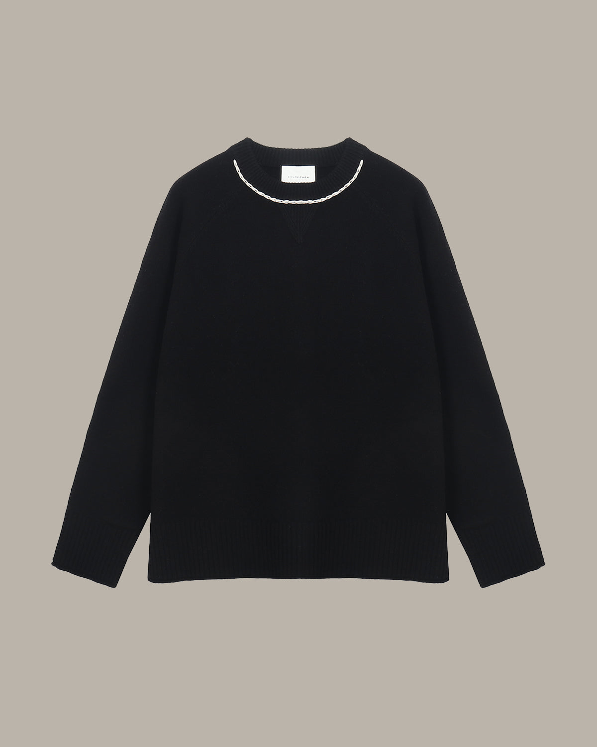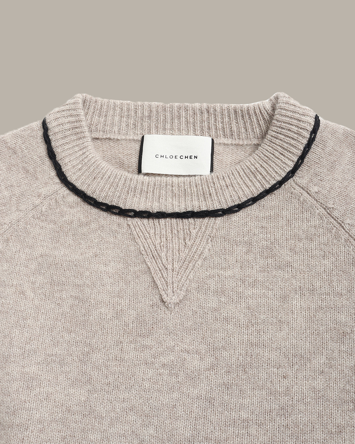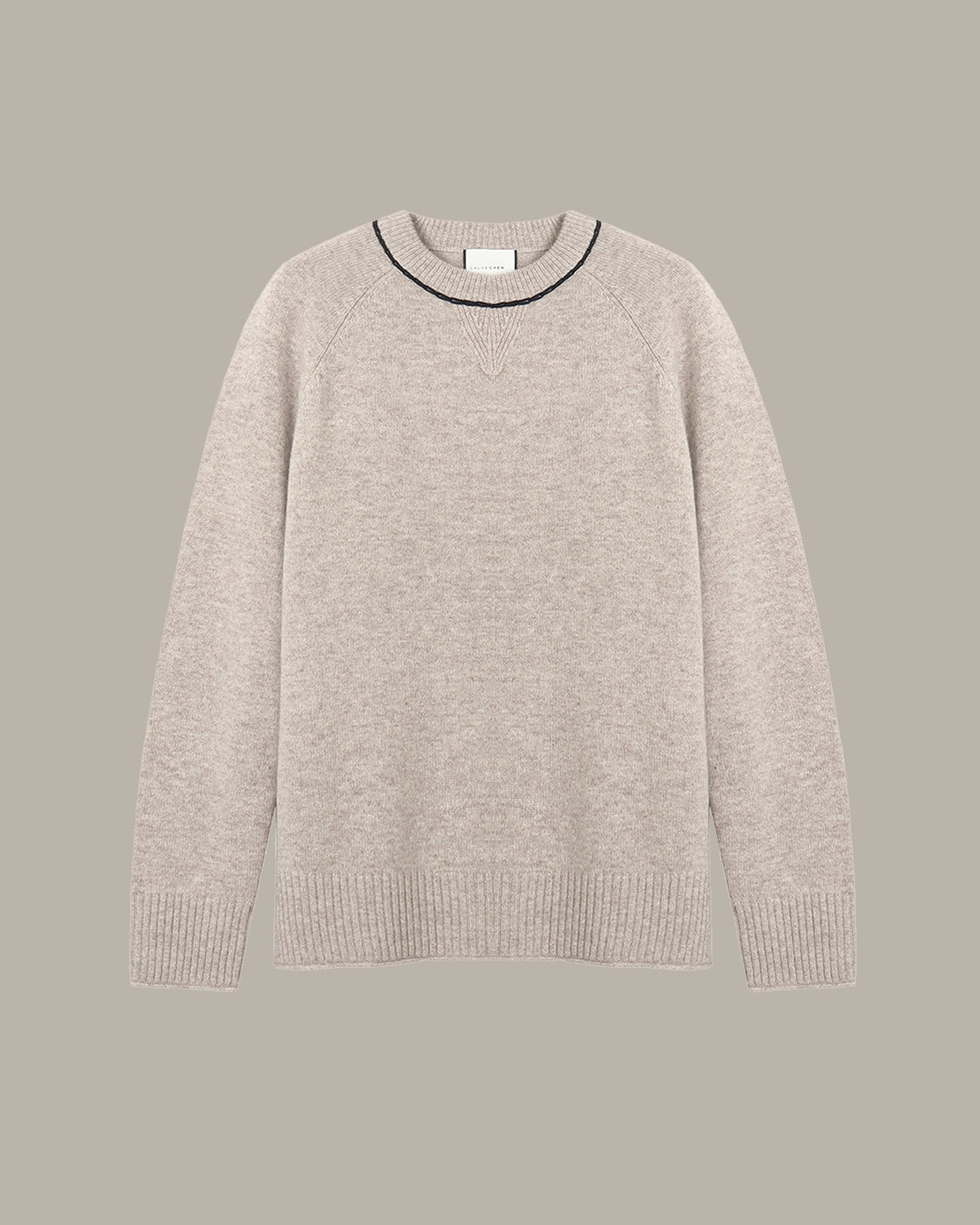 Crafted from soft wool, this sweater features a relaxed fit and delicate chain trim at the neck for subtle polish. Ribbed cuffs/hem add structure, while the wool fabric offers cozy warmth and durable texture. Versatile for solo wear or layering.