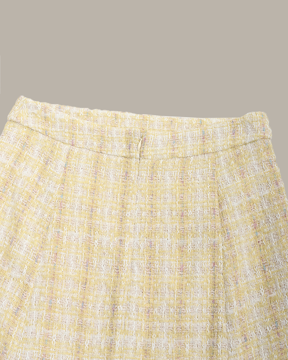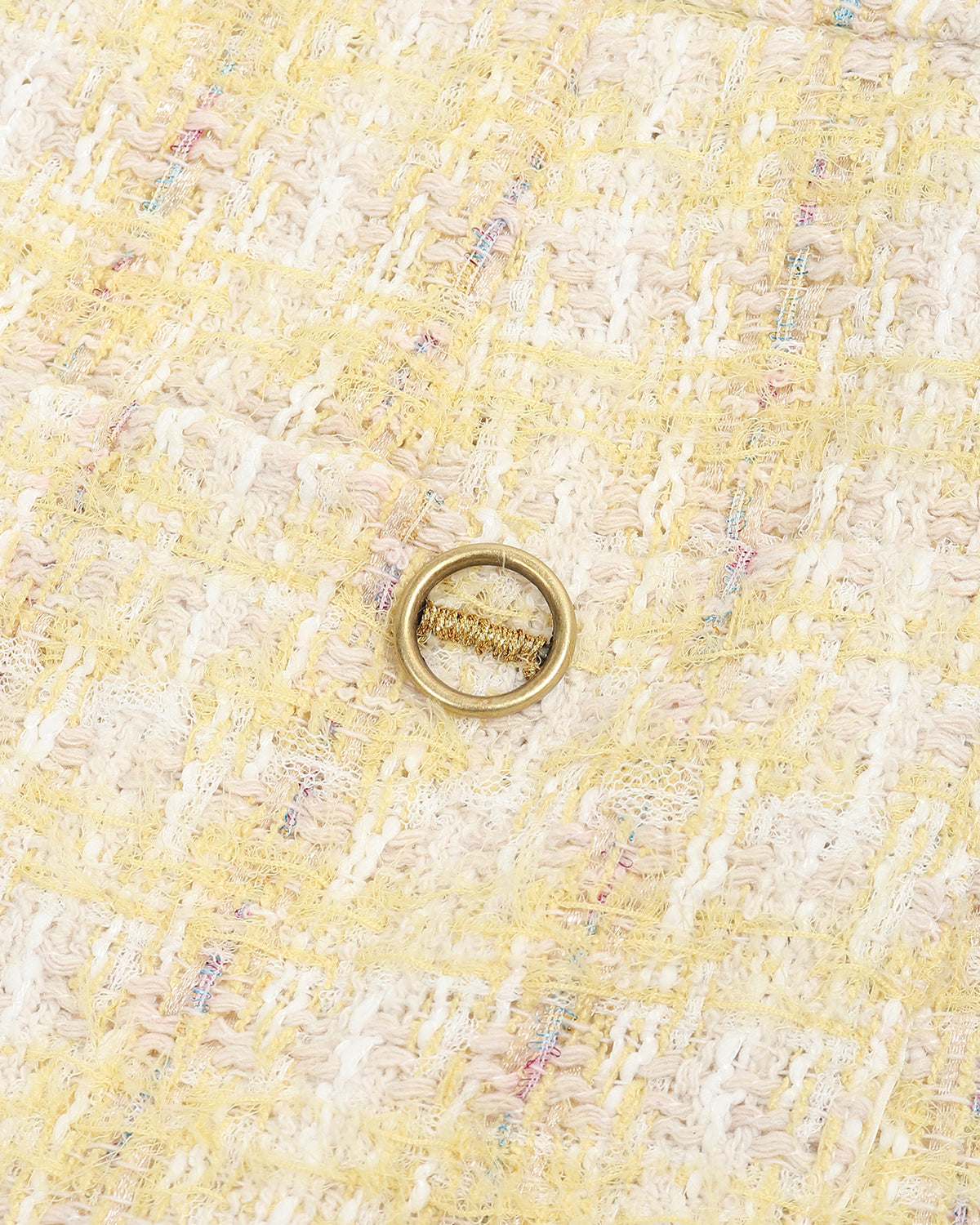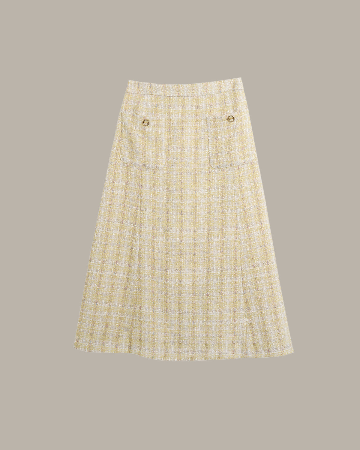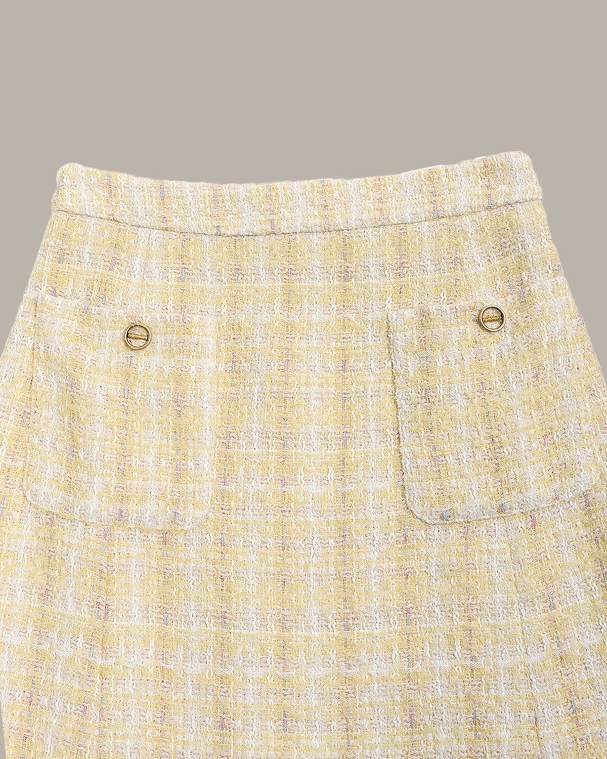 Crafted from marled yarn fabric, this skirt boasts a rich, textured surface that brings subtle depth to its silhouette. The metallic bar buttons atop the patch pockets elevate the design with a sleek, refined touch—blending the casual charm of marled texture with polished, classic details. Its A-line shape leans into effortless elegance, making it a staple piece that balances relaxed sophistication and timeless style.