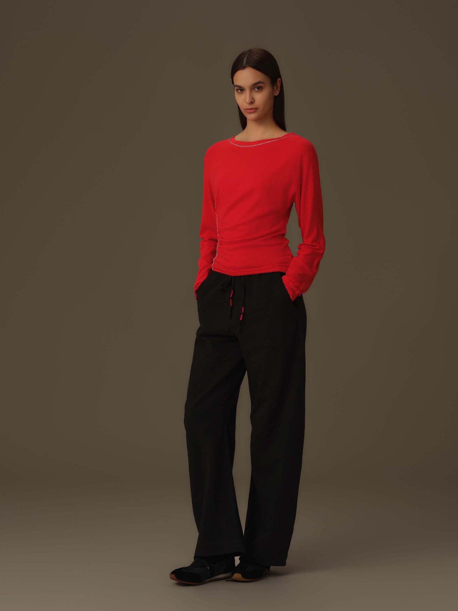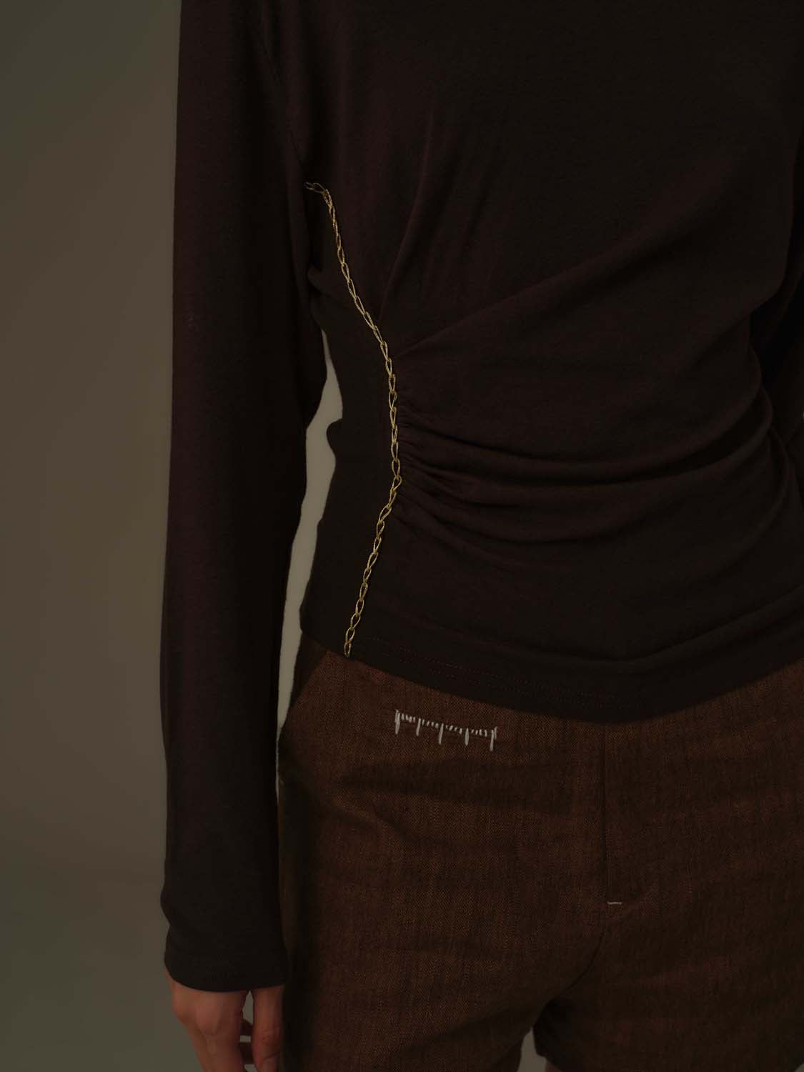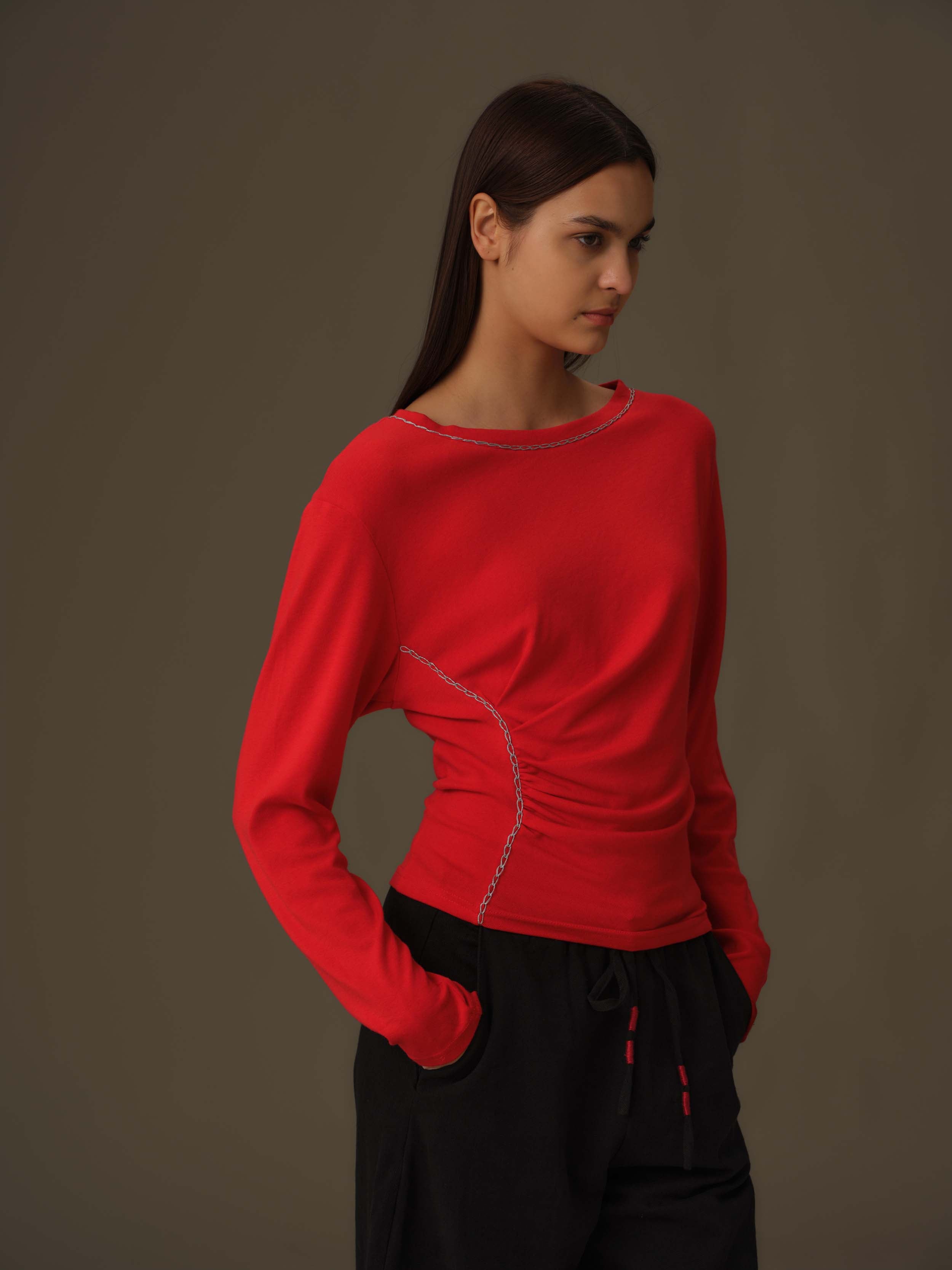 Elevate your wardrobe with the Asymmetrical Draped Chain Details Top, a refined choice for modern elegance. Its unique asymmetrical cut flatters the silhouette, while the delicate chain accents add a subtle yet striking touch of sophistication. Perfect for both upscale events and stylish evenings out, this top combines contemporary design with effortless charm.