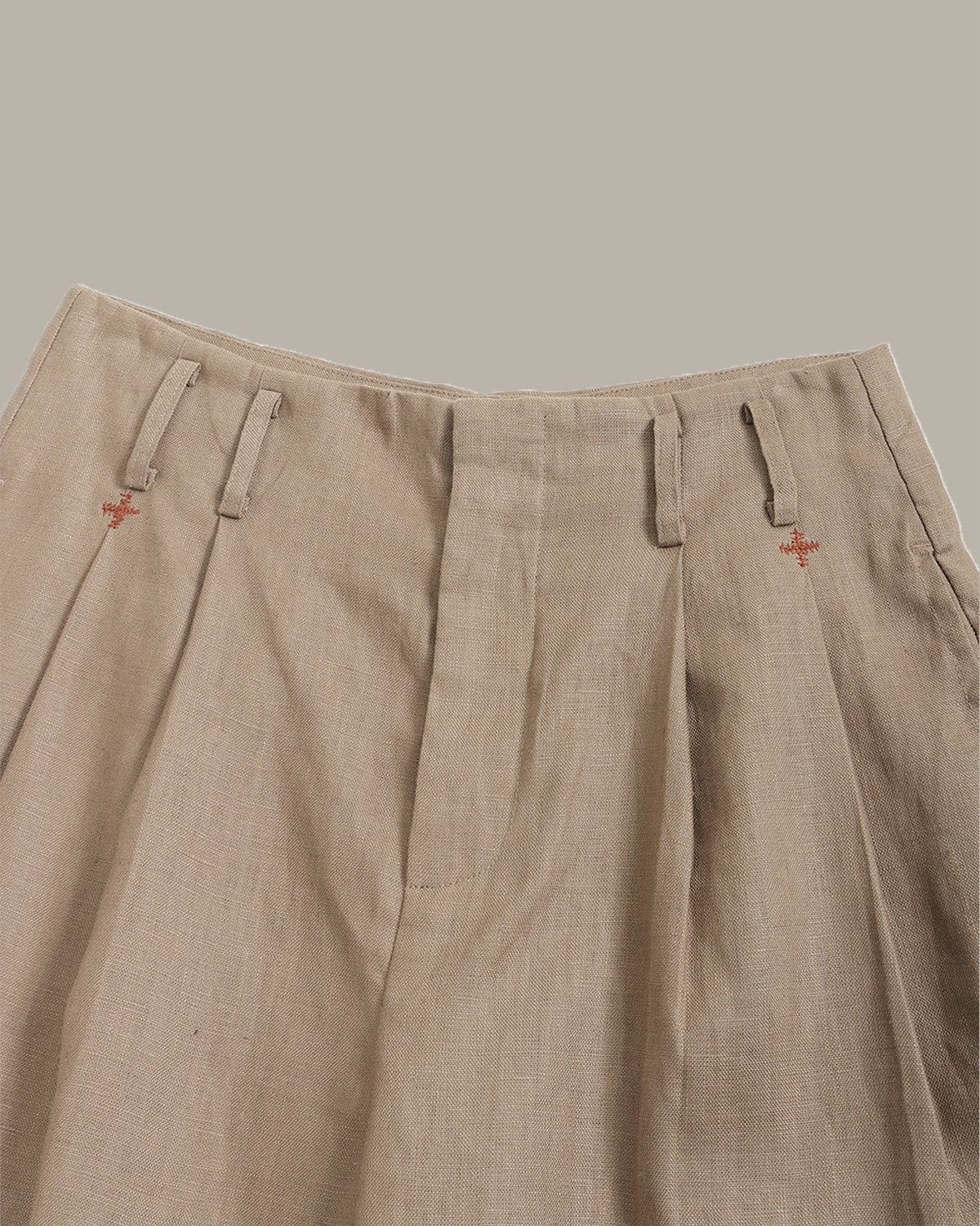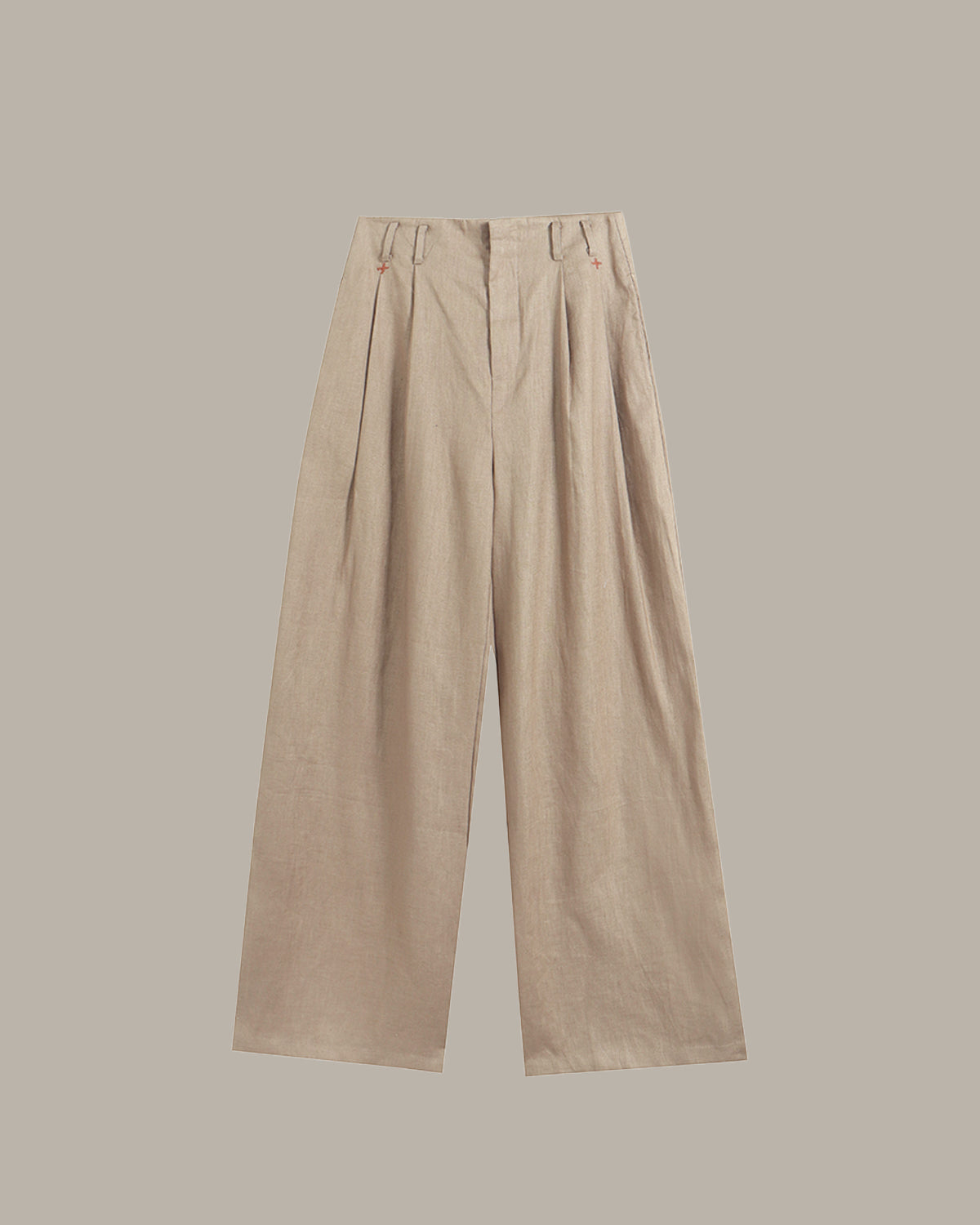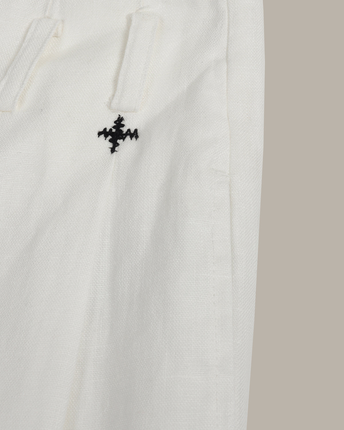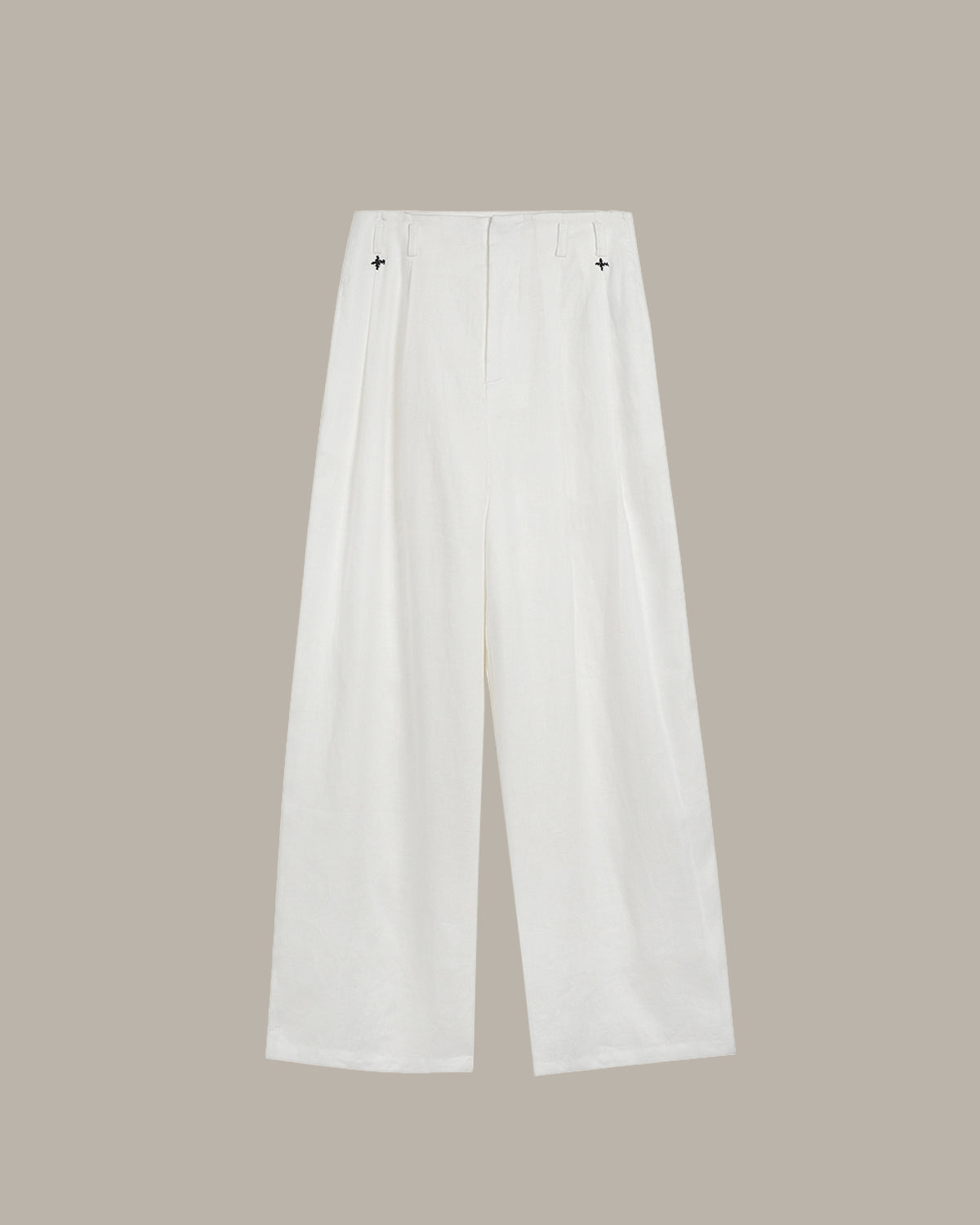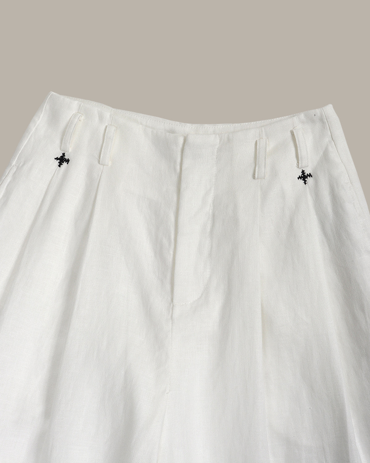 These tailored wide-leg trousers are defined by clean pleats and subtle embroidery at the waistband. Their flowing silhouette is perfect for day-to-night transitions. Style them with a silky shirt, minimal heels, or a structured blazer to complete the look.
