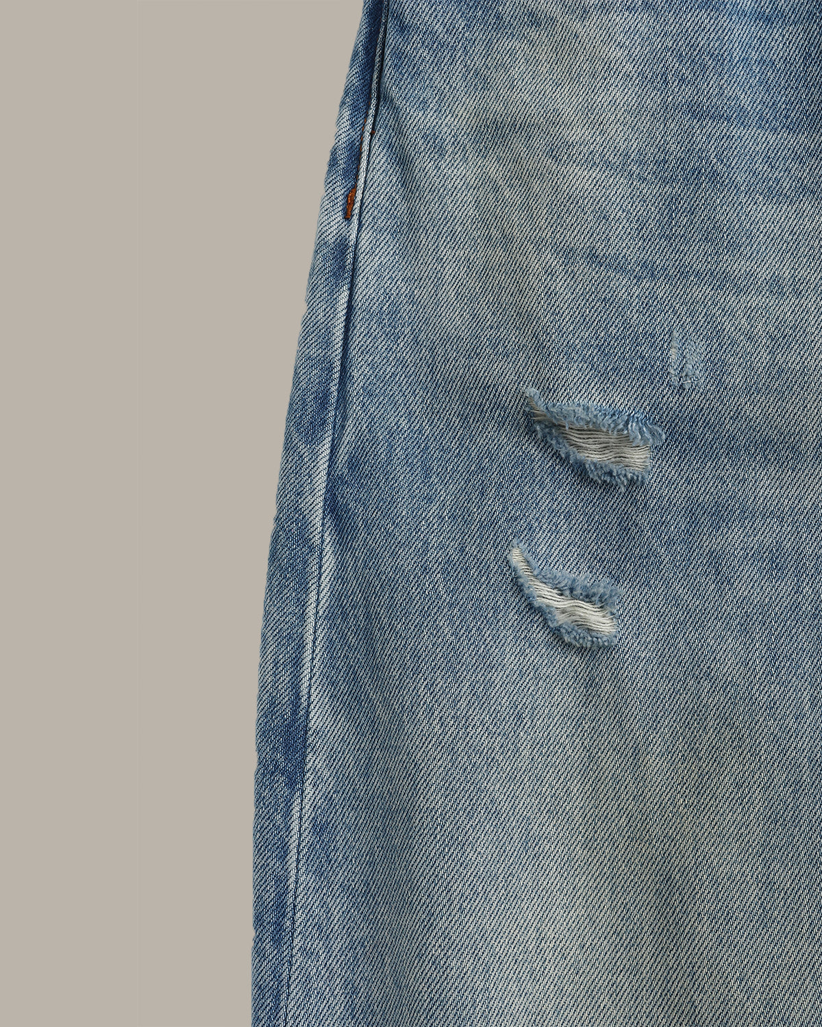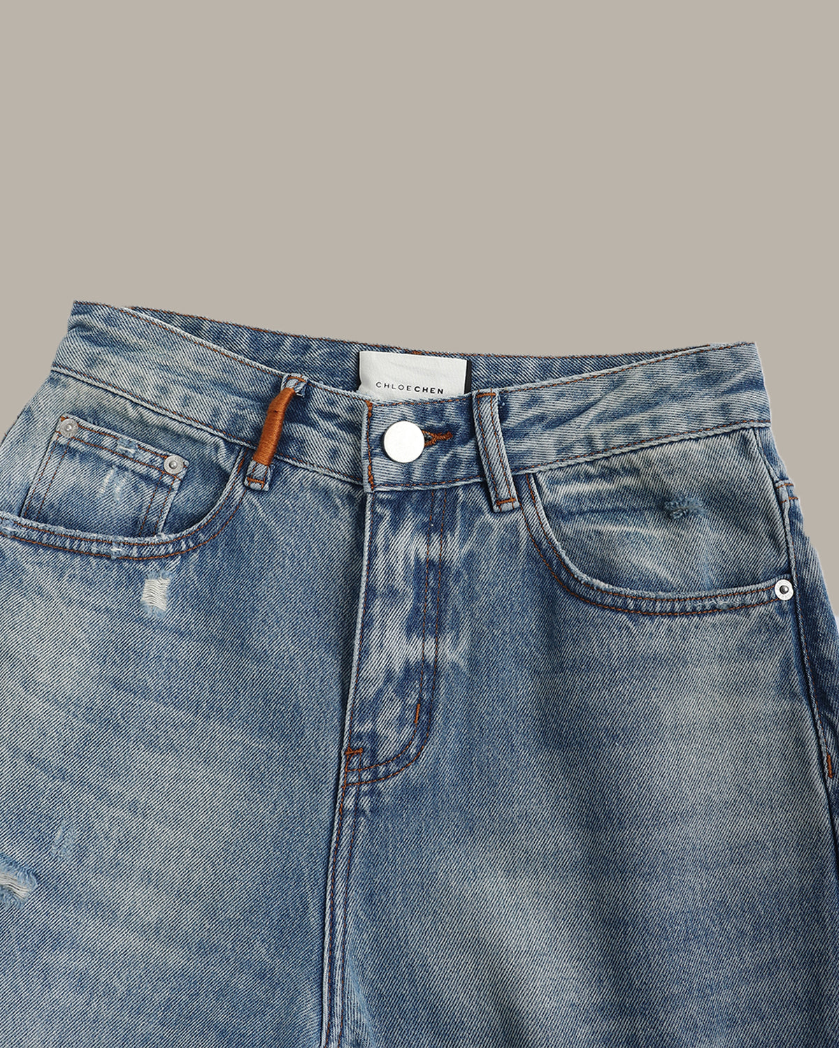 Featuring a double flap design on the back pockets with decorative stitching, these wide-leg jeans bring a unique twist to classic denim. Subtle distressing and a faded finish add to their laid-back charm.
