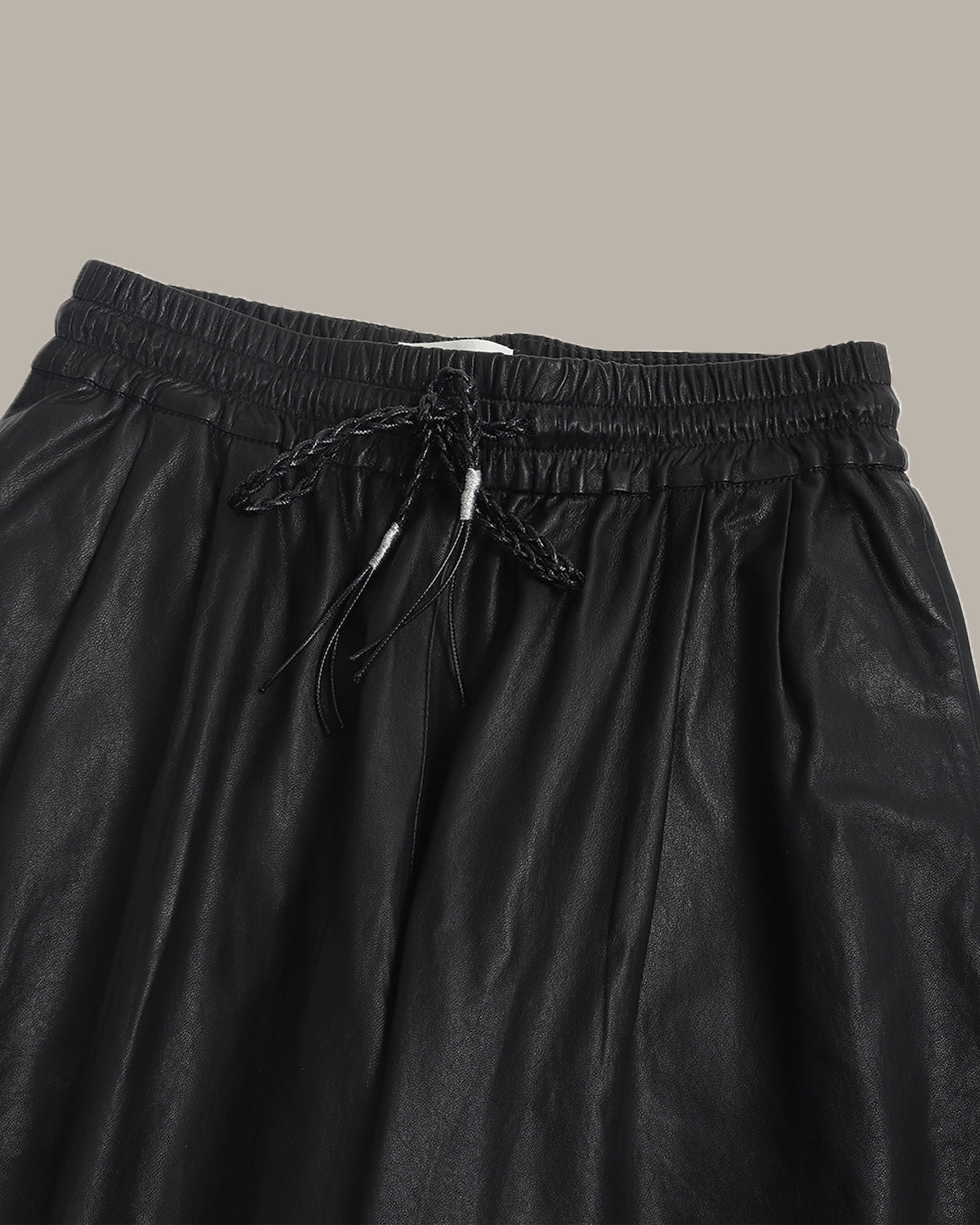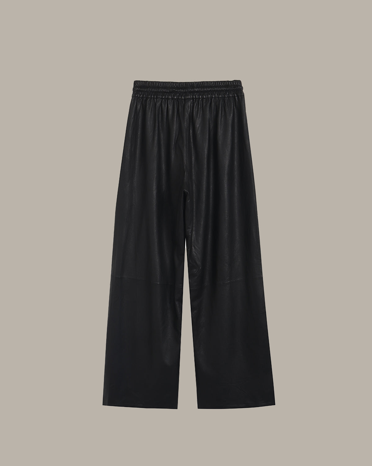 Timeless leather craftsmanship meets modern ease. These straight leg leather pants feature a drawstring waist that adapts to your silhouette, delivering both comfort and refined style. The supple leather construction ensures lasting quality and a polished appearance, while the expansive leg opening creates an understated, contemporary proportion. A versatile essential for curated wardrobes.