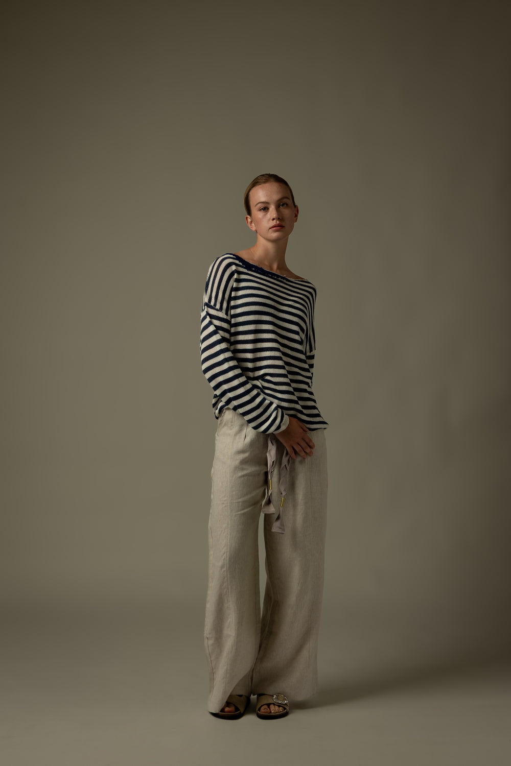 Elevate your wardrobe with these Stitch-Detail Wide-Leg Pants. The distinctive stitch detailing adds architectural interest while the flowing silhouette creates an effortlessly elegant profile. Designed with both comfort and sophistication in mind, these pants transition seamlessly from professional settings to evening engagements with graceful versatility.