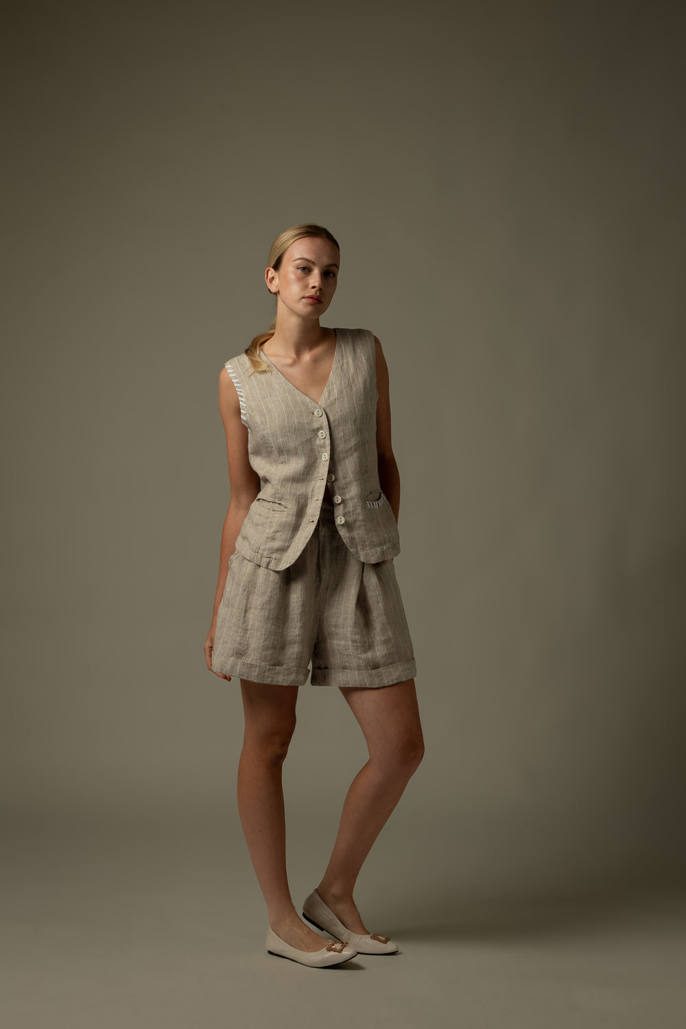 Crafted from breathable linen, these Stitch Details Linen Shorts provide a lightweight and comfortable option for warm days. The subtle stitch accents add a refined touch to a classic design, making them perfect for casual wear or relaxed weekends.