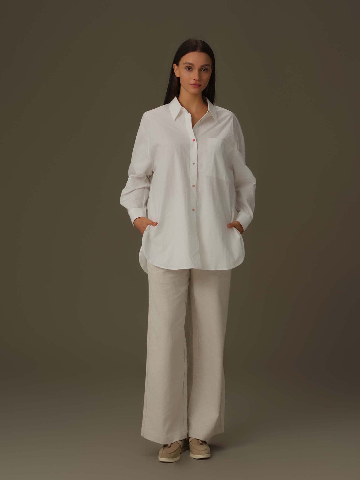 極簡純棉襯衫以其精緻的設計和優質的棉質面料,彰顯低調優雅。柔軟的觸感和透氣性,確保全天穿著舒適,同時保持精緻外觀。無論是精緻的休閒場合還是職業場合,這款襯衫都是您精緻衣櫥中永恆的必備單品。