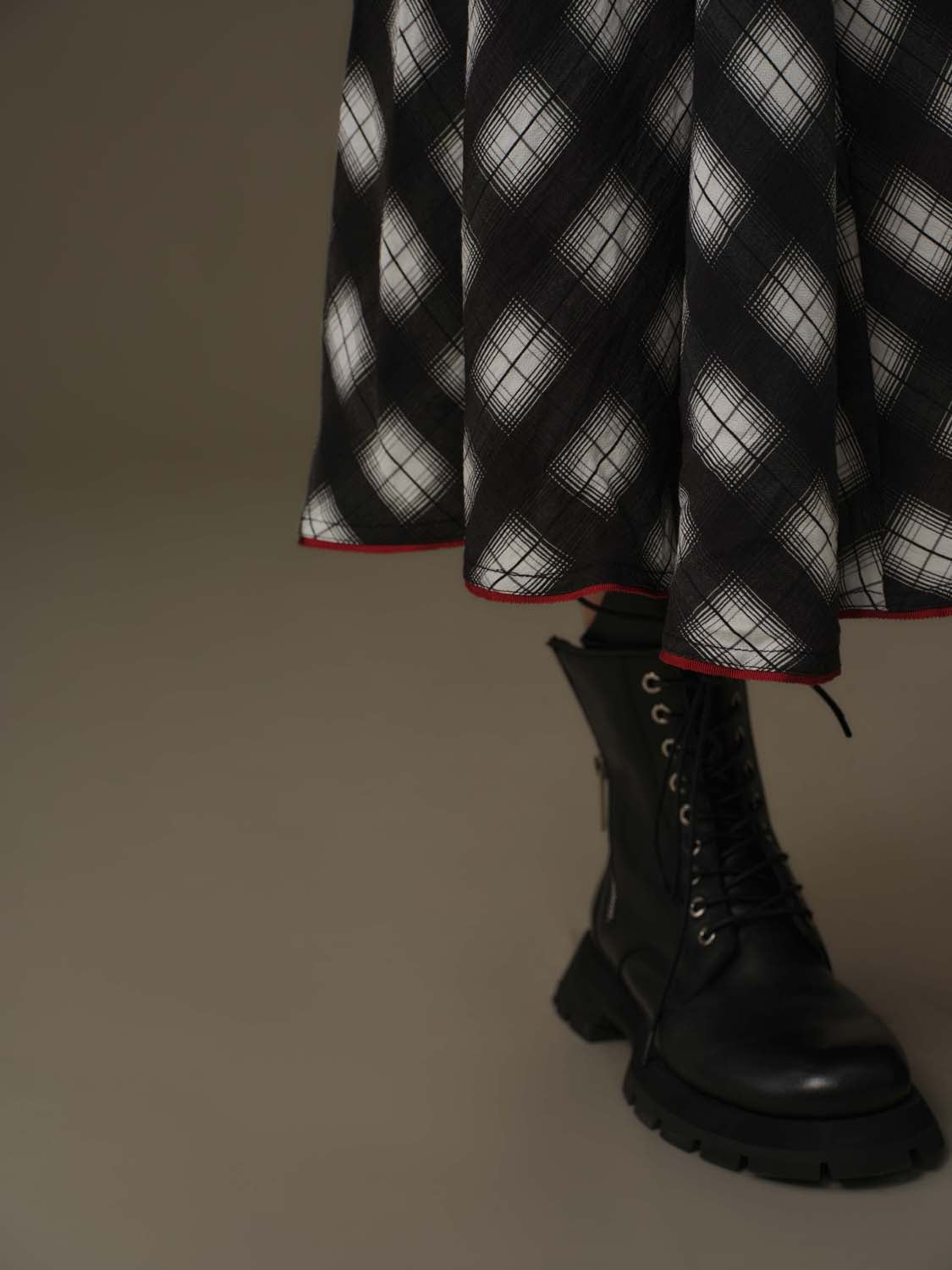 經典格紋中長裙,將雋永優雅與現代氣息完美融合,為您的衣櫥錦上添花。經典格紋圖案與優雅喇叭裙輪廓相得益彰,打造精緻廓形,優雅動感。無論是職場還是時尚週末,這款半身裙都能輕鬆駕馭,展現輕鬆優雅的氣質與百搭魅力。