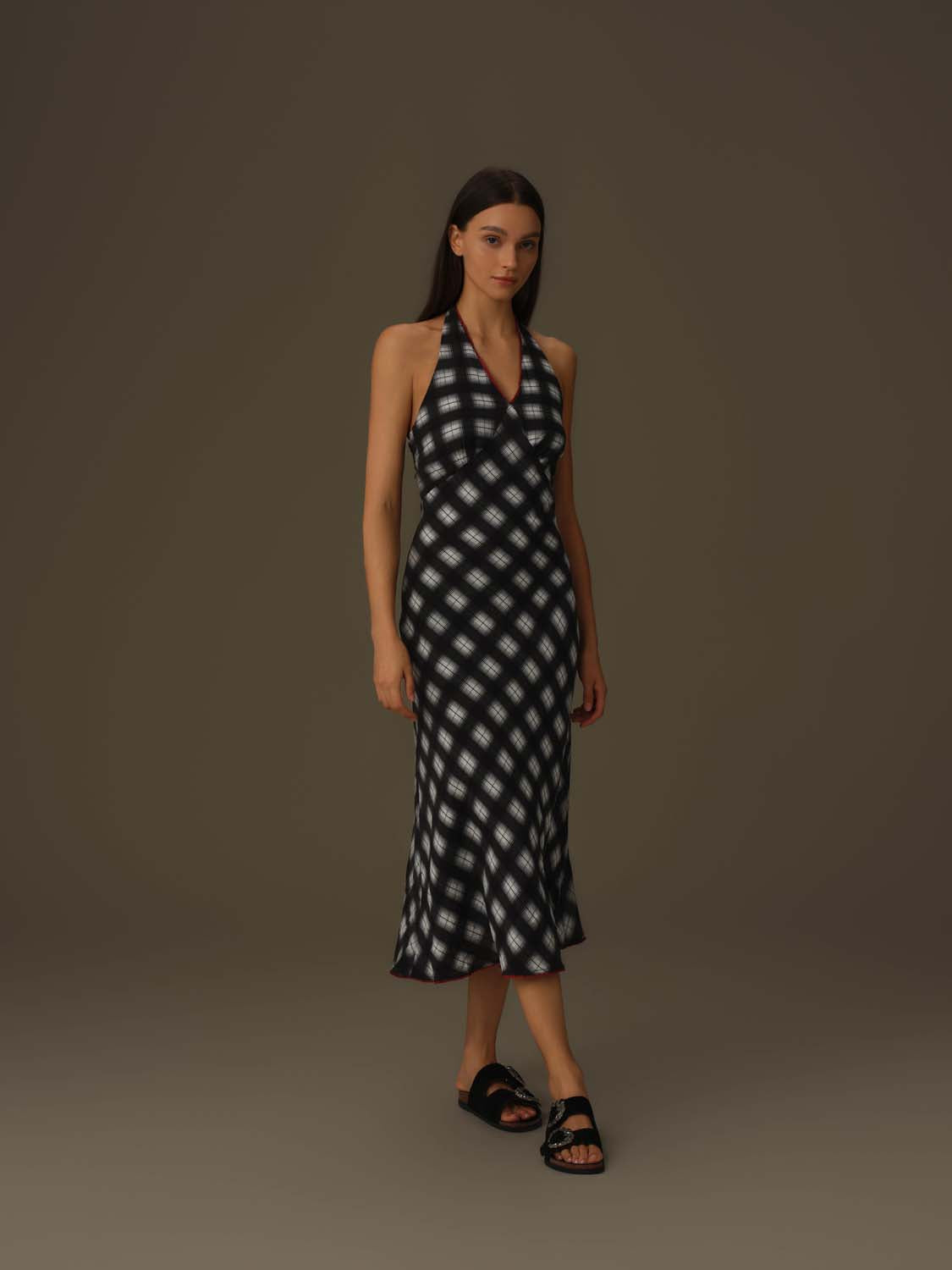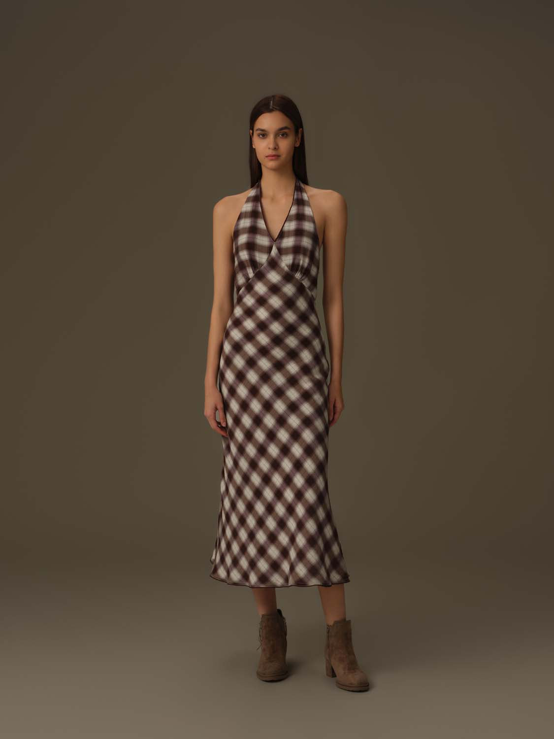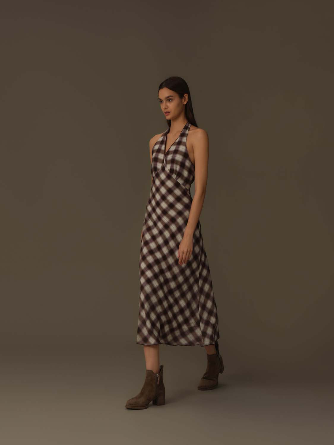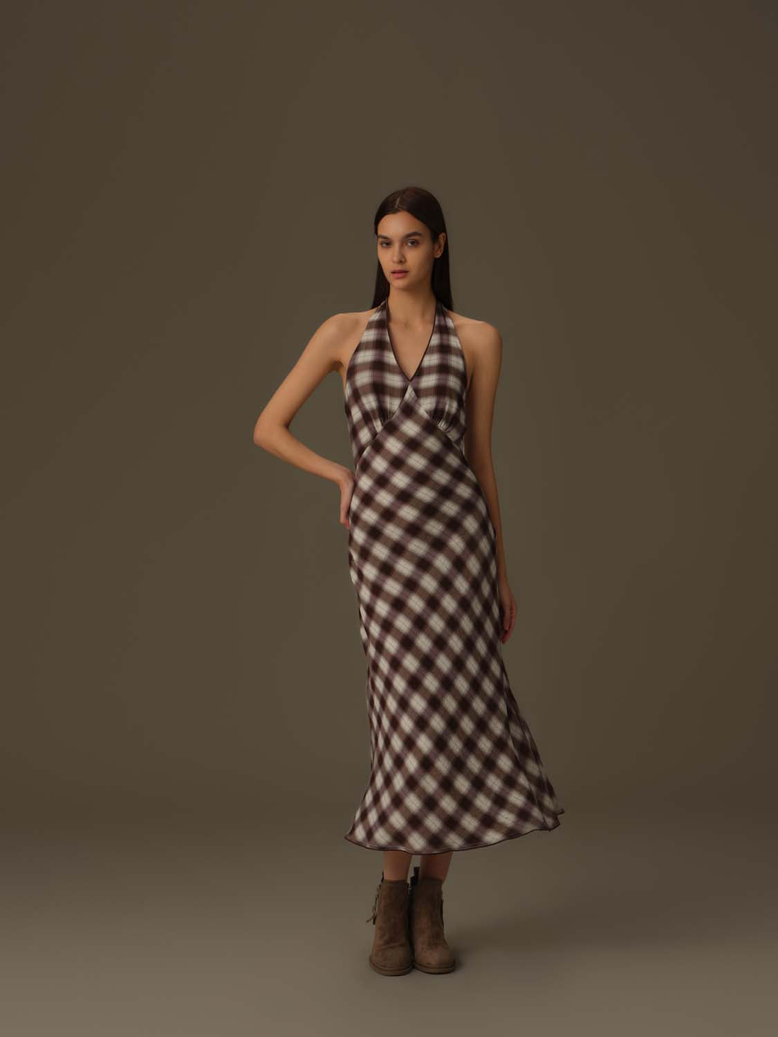 這款經典格紋露背連身裙將經典圖案與現代輪廓巧妙融合,為您的衣櫥錦上添花。掛脖領口勾勒出優美的肩線,格紋印花更添經典雋永的節奏。無論是優雅的日間活動還是精緻的晚間場合,這款洋裝都能完美呈現,精緻優雅的造型更能凸顯您自然優雅的氣質。