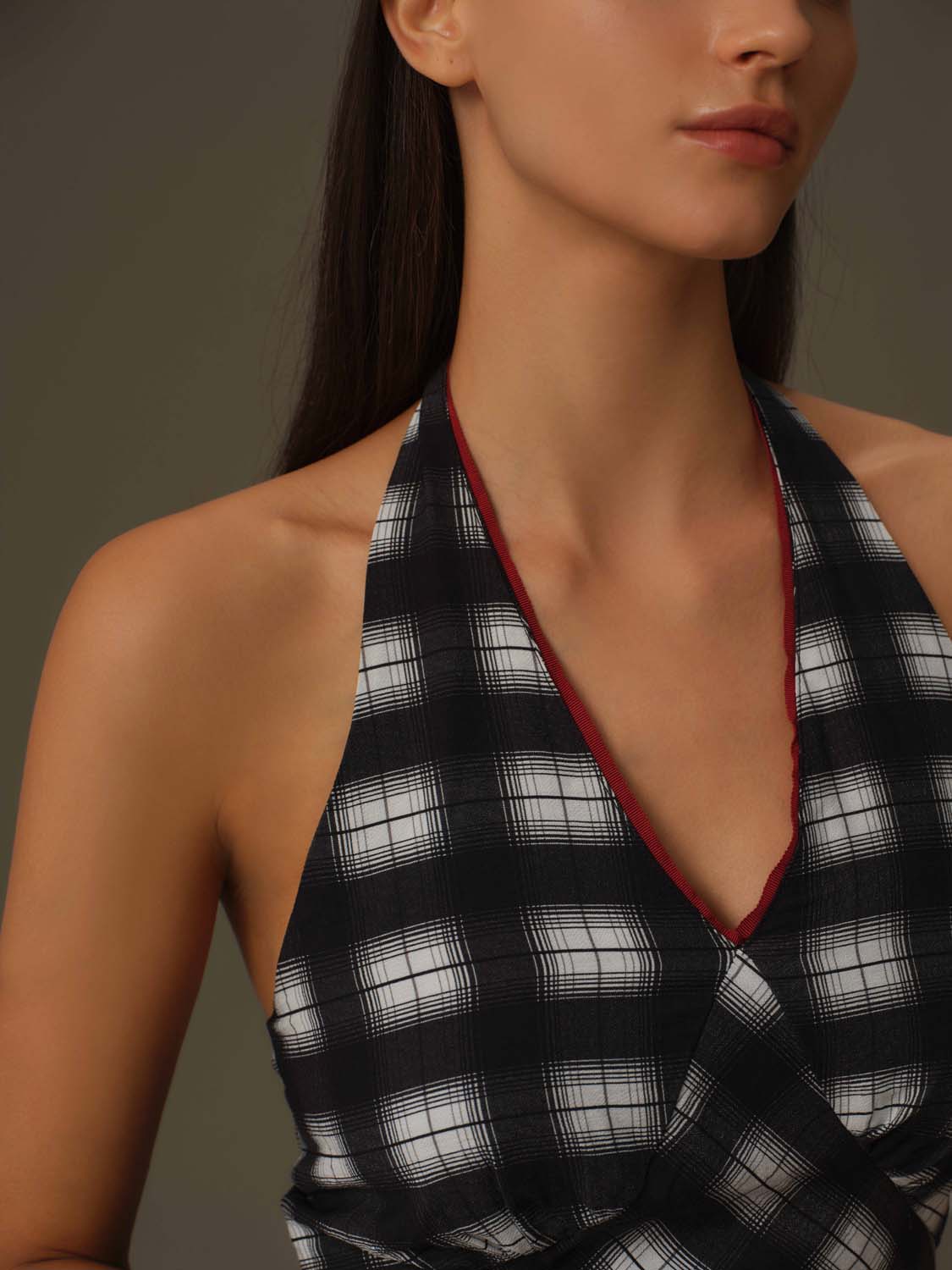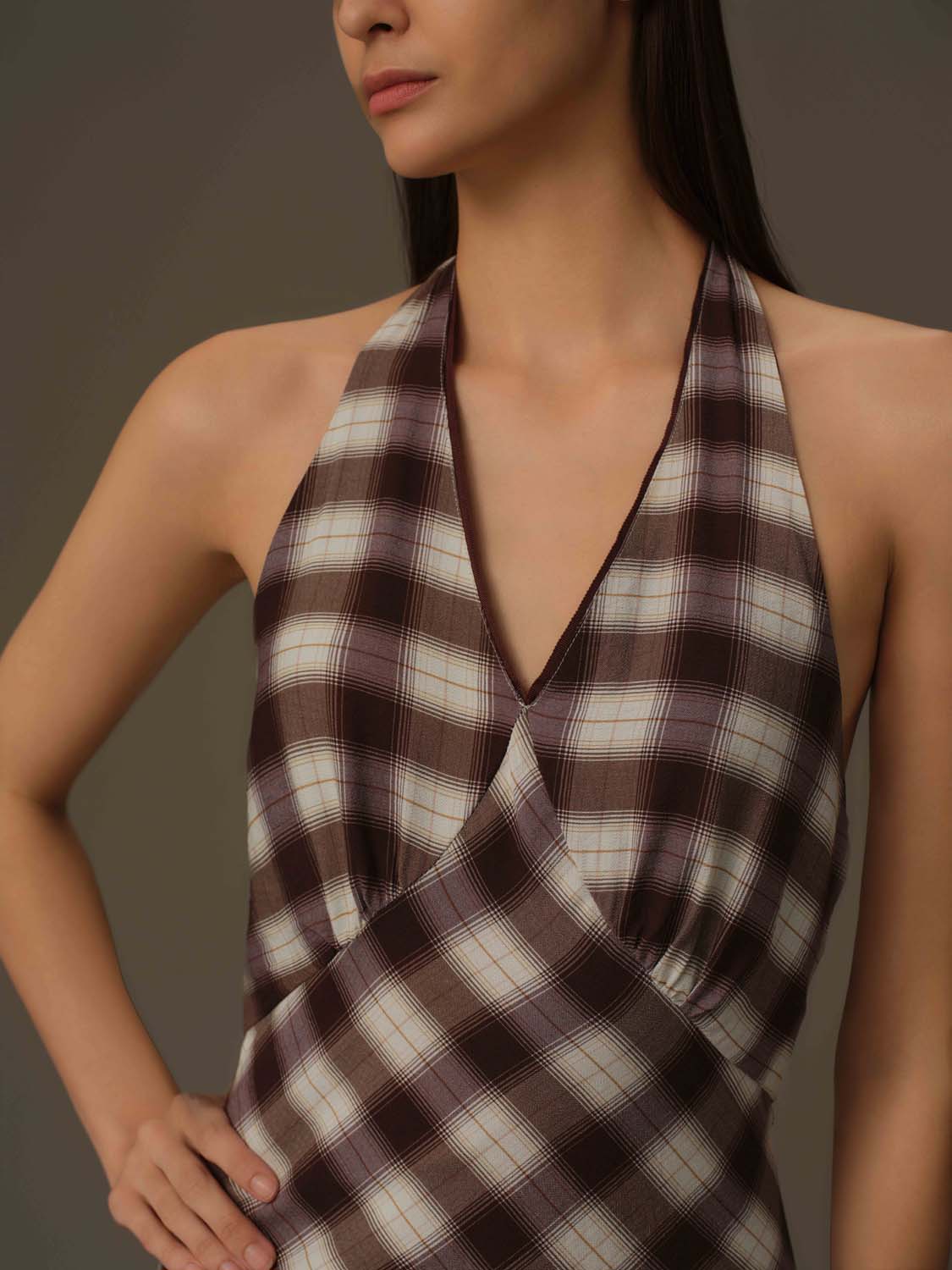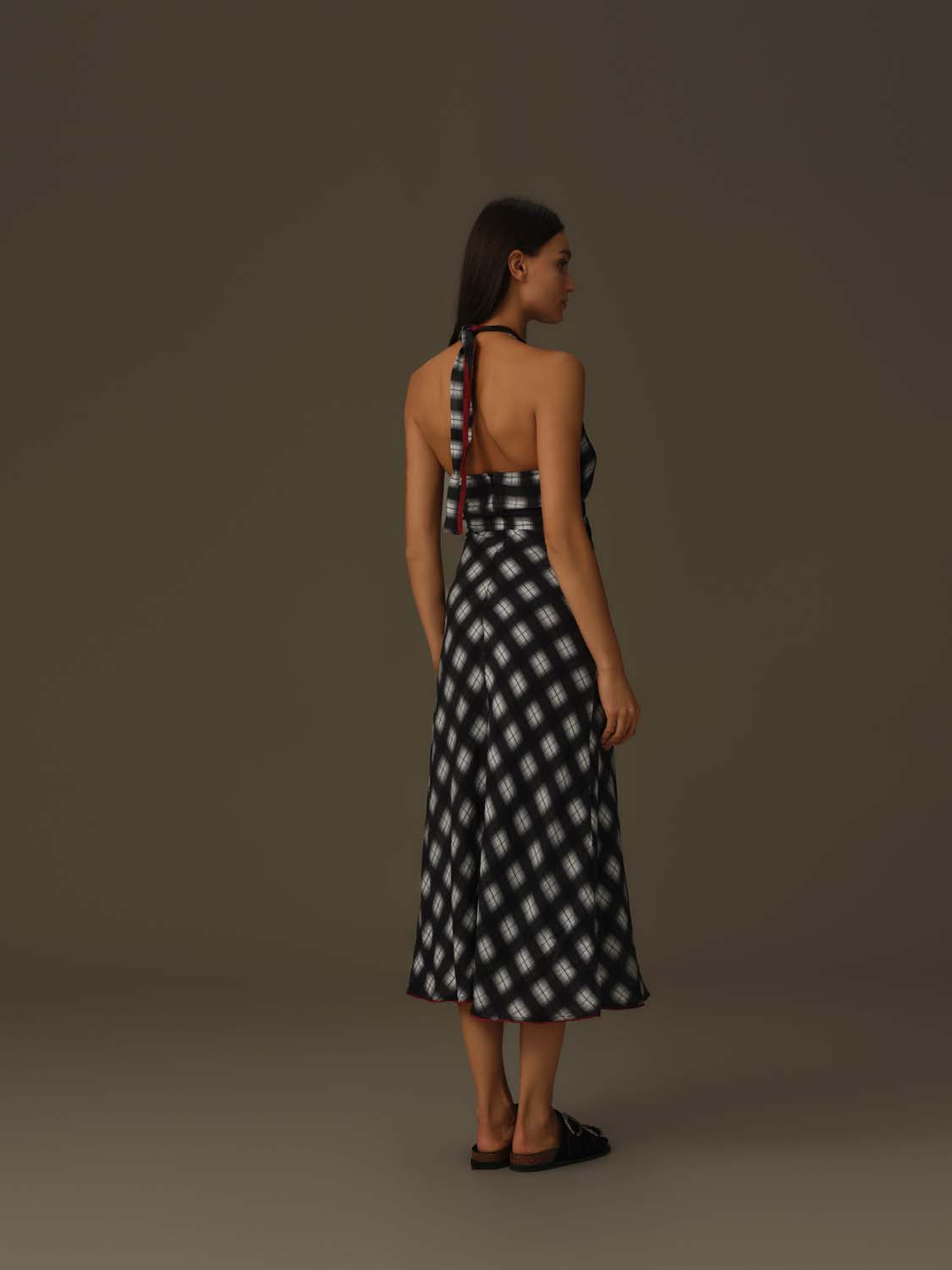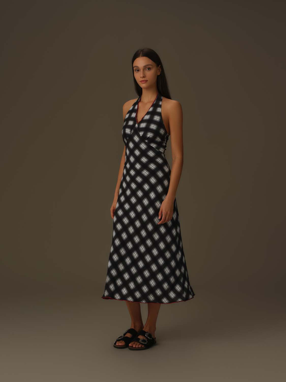 這款經典格紋露背連身裙將經典圖案與現代輪廓巧妙融合,為您的衣櫥錦上添花。掛脖領口勾勒出優美的肩線,格紋印花更添經典雋永的節奏。無論是優雅的日間活動還是精緻的晚間場合,這款洋裝都能完美呈現,精緻優雅的造型更能凸顯您自然優雅的氣質。