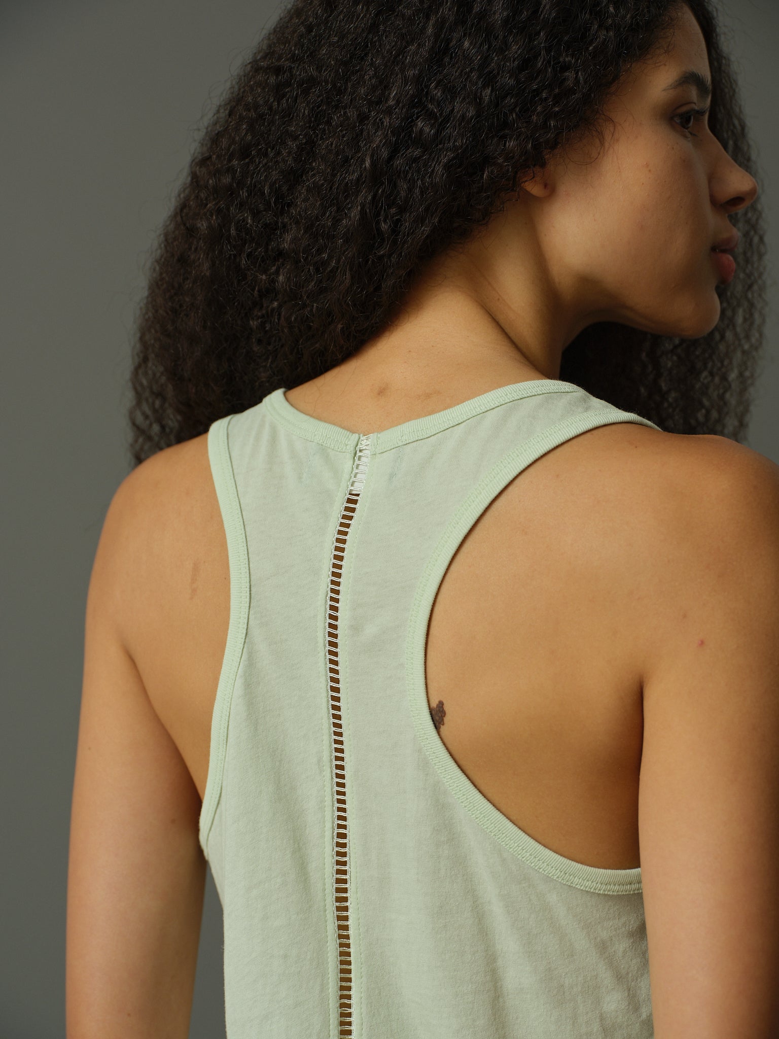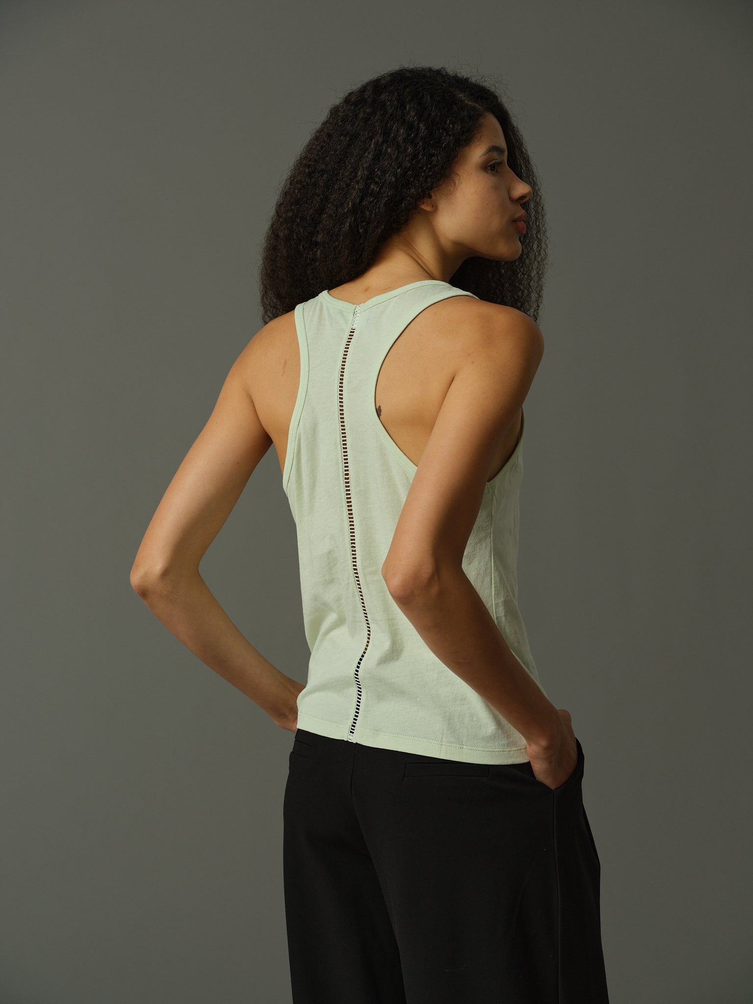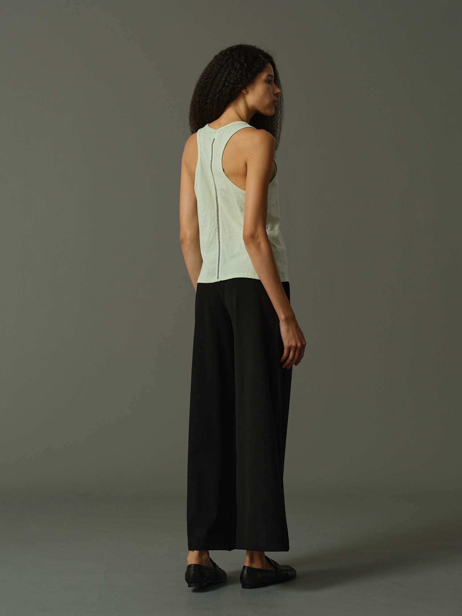 這款背心正面俐落,背面則有搶眼的縷空縫線細節,可穿出正式或休閒風格。搭配牛仔褲、寬褲或飄逸長裙,打造百變造型。