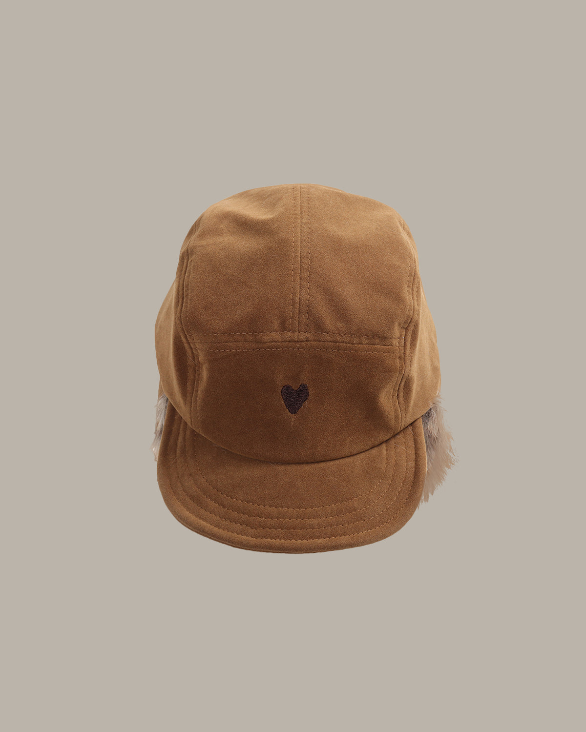 這款帽子飾有愛心刺繡和柔軟的人造毛皮護耳,是寒冷天氣中既舒適又時尚的選擇。可調節的帽帶確保配戴穩固舒適。
