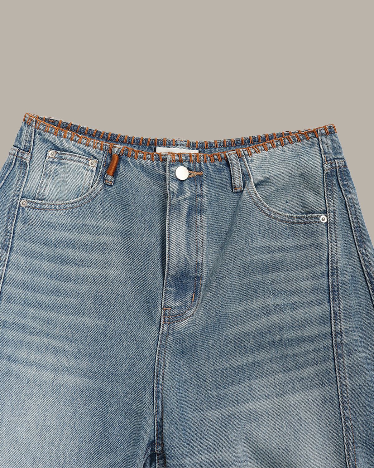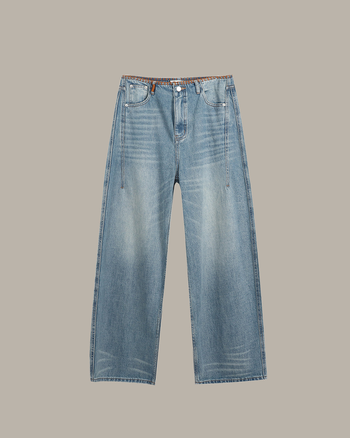 這款寬版牛仔褲結合了寬鬆舒適的版型,並在腰頭與口袋處加入了醒目的裝飾縫線,為經典衣櫥單品注入現代感。不論是休閒造型還是精緻穿搭,皆完美適配。