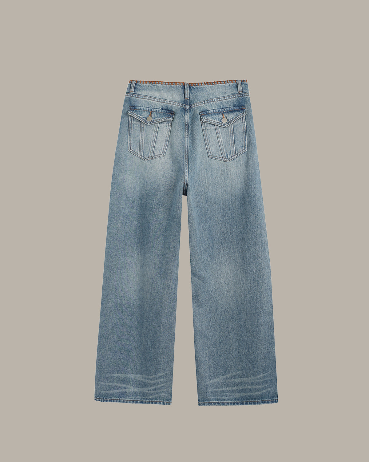 裝飾縫線闊腿牛仔褲