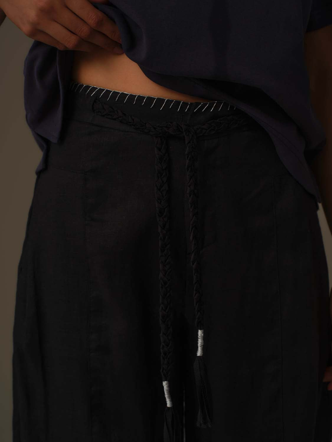 這款編織抽繩亞麻長褲採用優質透氣亞麻布料精製而成,帶來全天舒適穿著體驗。腰部精緻的編織抽繩和縫線細節,更添精緻優雅。這款褲子完美平衡了休閒隨性與精緻風格,是打造精緻現代造型的必備單品。