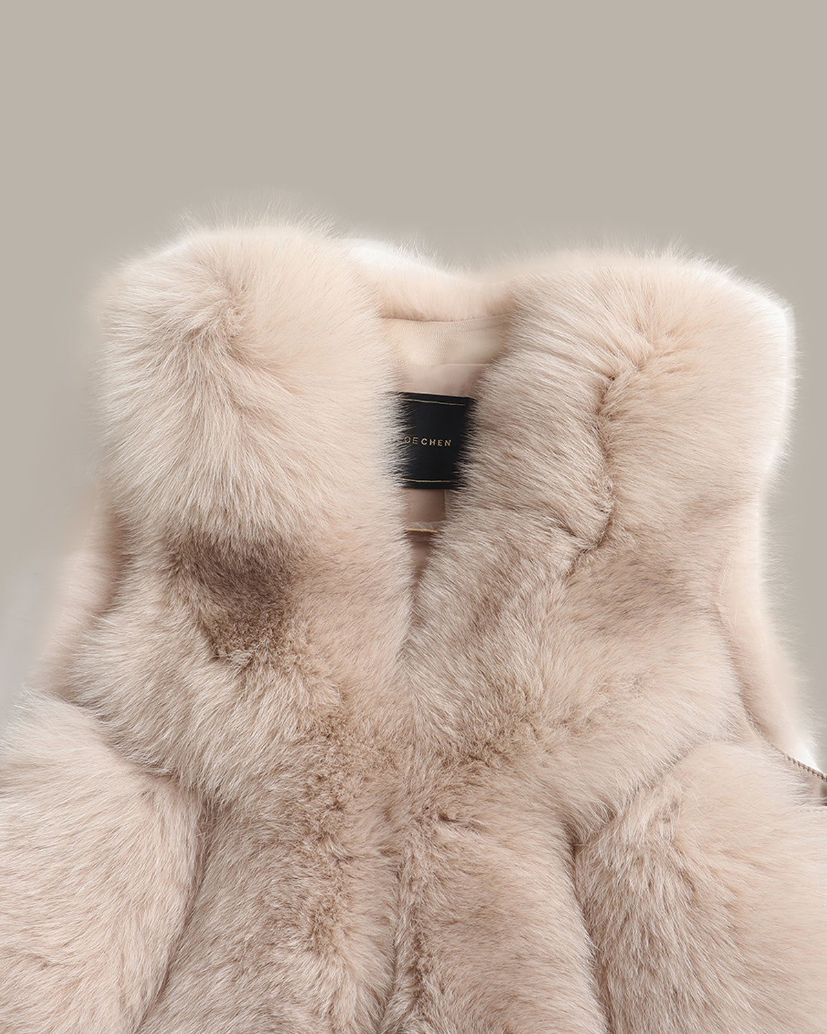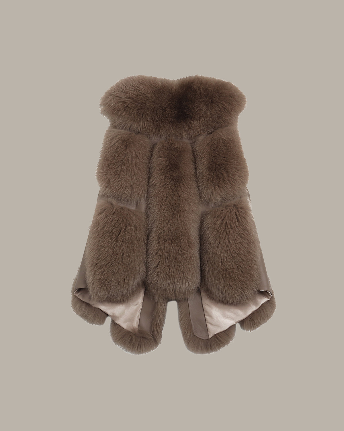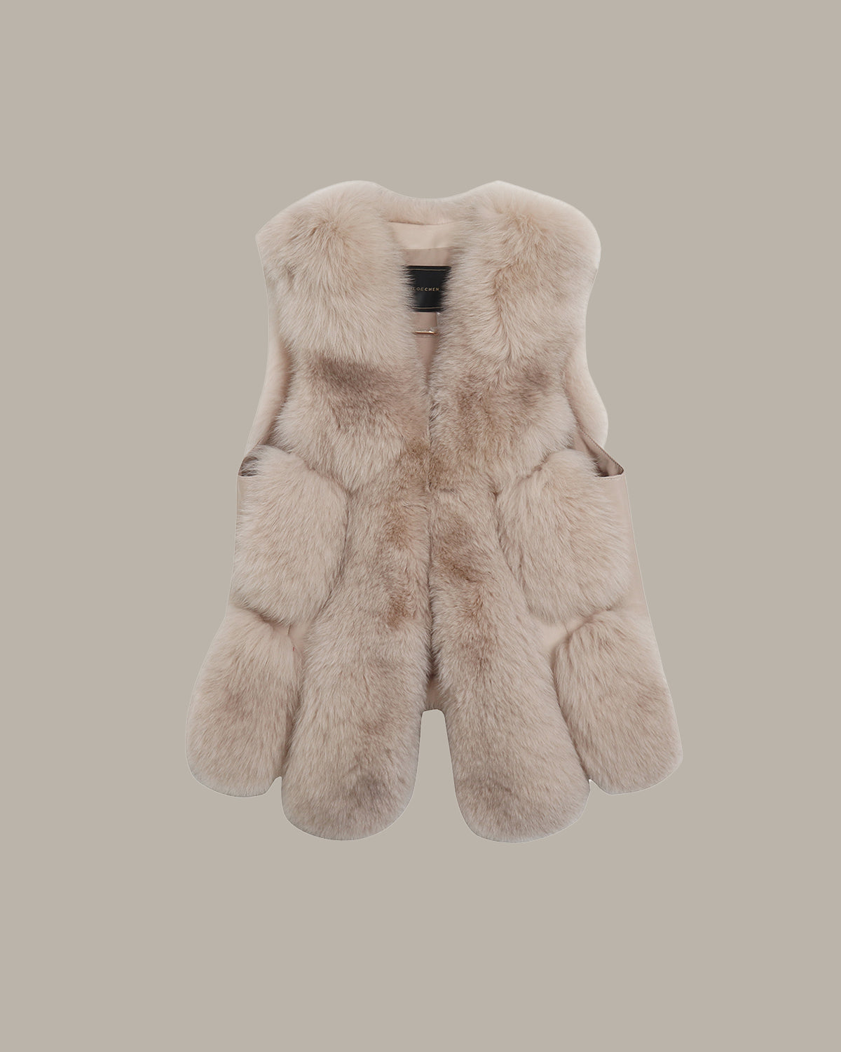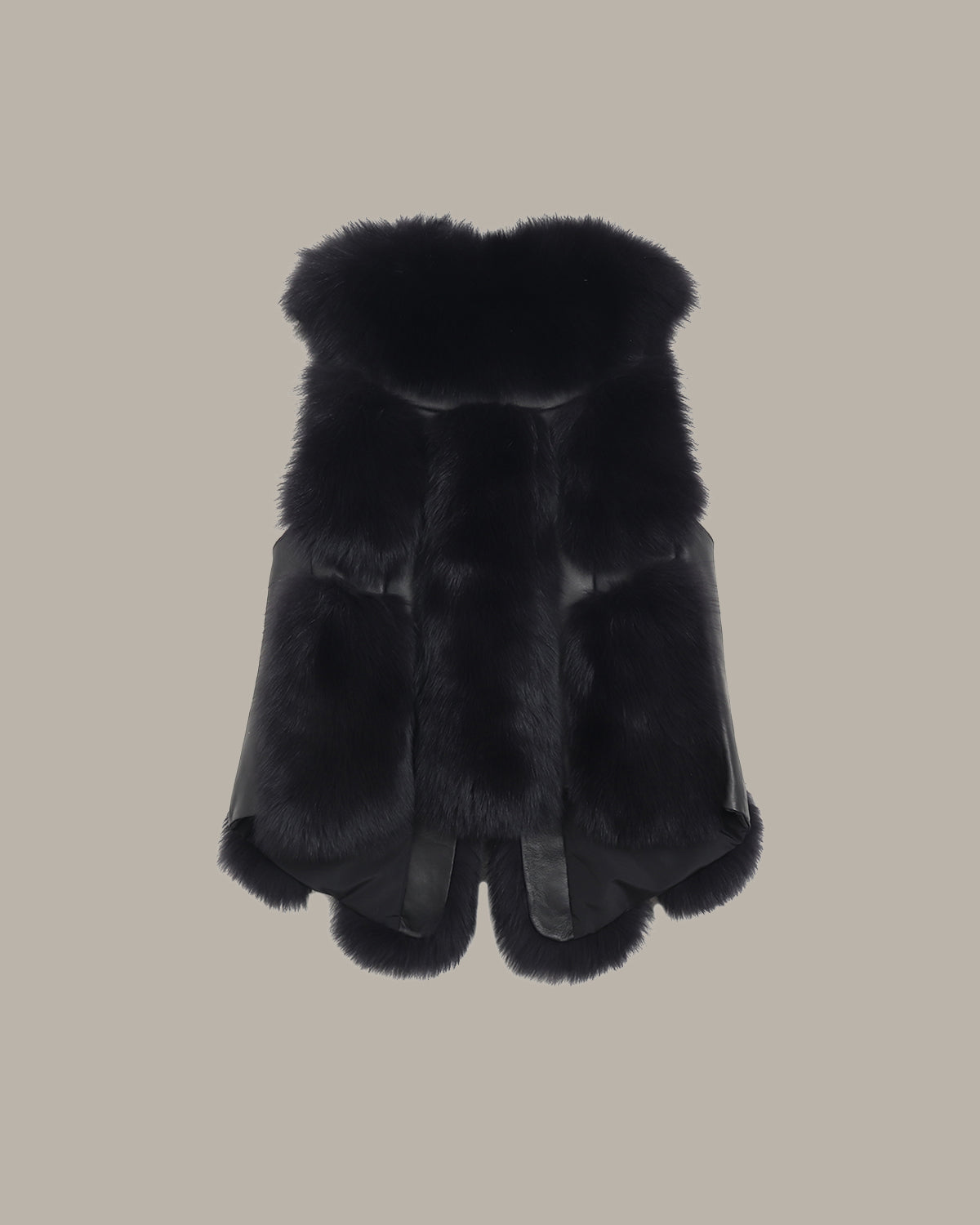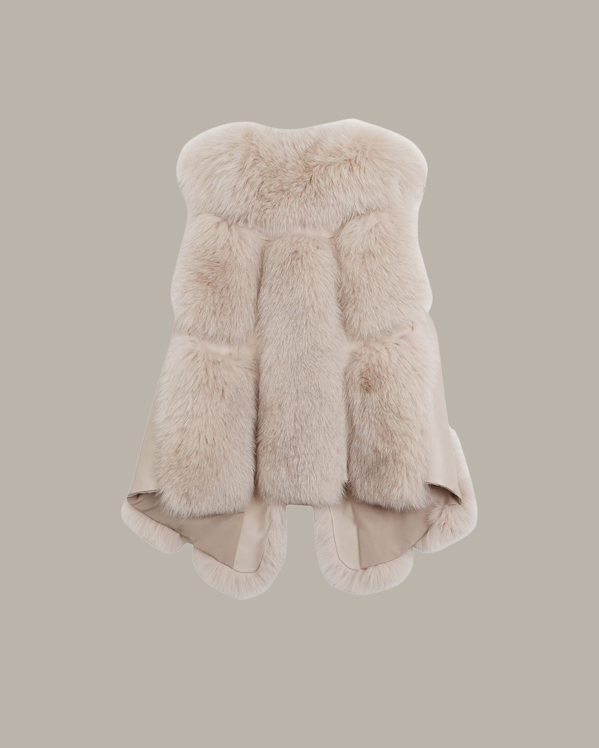 外层是蓬松狐狸毛,绒感丰盈柔软,浅调渐变自带温柔氛围;内里衬绵羊皮,贴肤细腻柔韧,兼顾质感与舒适。 弧形廓形剪裁松弛不臃肿,口袋与衣身同料衔接得利落又精致,无袖设计适配叠穿。